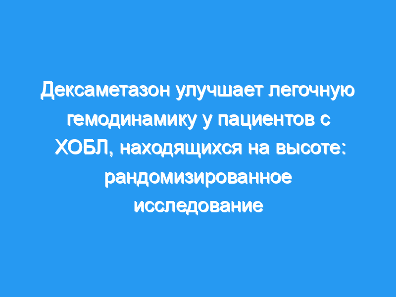 В этом плацебо-контролируемом двойном слепом исследовании пациенты с ХОБЛ без гиперкапнической болезни, живущие на высоте 800 м, были рандомизированы для приема дексаметазона (8 мг/сут) или таблеток плацебо за день до подъема на высоту 760 м и в течение 3-дневного пребывания на высоте 3100 м. Эхокардиографию проводили на высоте 760 м, а после первой ночи — на высоте 3100 м. Между группами сравнивали градиент транстрикуспидального давления (RV/RA, основной результат), сердечный выброс (Q) по интегралу скорости и времени оттока из левого желудочка, показатели функции правого и левого сердца, газов крови и пульсоксиметрии (SpO2).