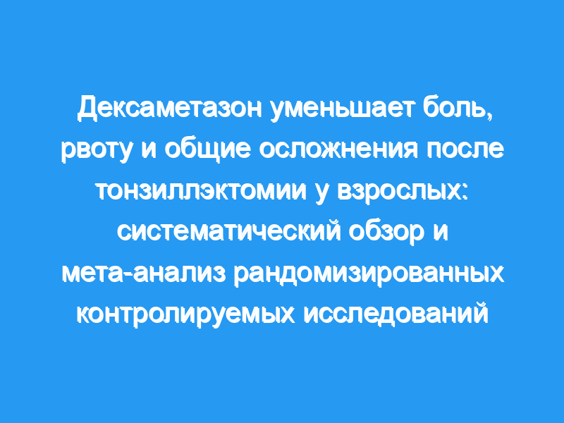 Дексаметазон уменьшает боль, послеоперационную тошноту и рвоту, кровотечение и общие послеоперационные осложнения у взрослых, перенесших тонзиллэктомию. Однако влияние дозы дексаметазона на послеоперационную боль и то, уменьшает ли дексаметазон кровотечение, требуют дальнейших исследований.