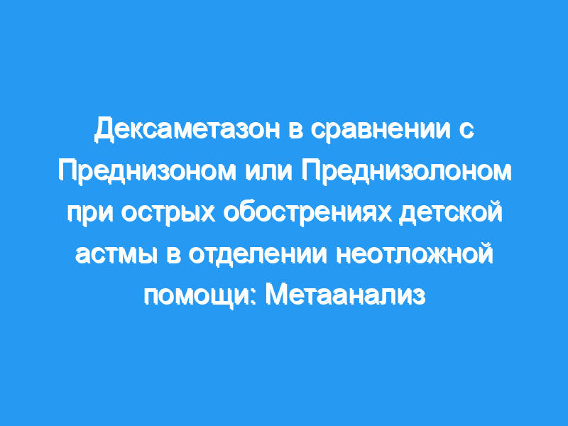 Данные из 10 исследований (3208 педиатрических пациентов с астмой [1616 пациентов, получавших DEX, и 1592 человека, получавших PRED], 4,77 года [95% доверительный интервал, 3,80-5,56 года], 63% [57.76%-62.68%] мужчины) были использованы. Риск рвоты препаратом был значительно ниже в группе DEX, чем в группе PRED (отношение рисков 0,29 [0,18-0,48], Р 0,00001). Пребывание в отделении неотложной помощи между пациентами, получавшими DEX и PRED, статистически различалось (0,16 [0,03-0,40] часа, Р = 0,02), но может не иметь клинического значения. Количество терапий β-агонистами, получаемых пациентами, получавшими DEX и PRED, было одинаковым. Лечение как DEX, так и PRED было связано с улучшением показателей оценки состояния астмы, и между группами не было существенной разницы. Также не было различий между группами в частоте госпитализаций, частоте повторных посещений ЭД и частоте госпитализации после рецидива.