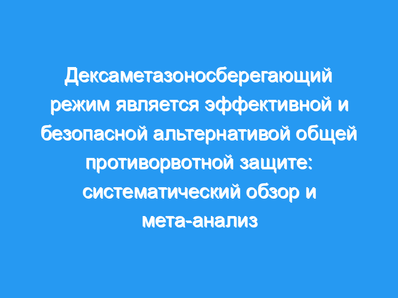 Было включено девять исследований. В отсроченной фазе поддерживающий дексаметазон обладает эффективностью, сходной с однократной дозой дексаметазона, при отсутствии эпизодов рвоты (ОР 1,06, 95% доверительный интервал [ДИ] 1,00-1,14), полном ответе (ОР 1,04, 95% ДИ 0,98-1,11), полном контроле (ОР 1,07, 95% ДИ 0,98-1,16) и общий контроль (ОР 1,06, 95% ДИ 0,91-1,23). В общей фазе поддерживающий дексаметазон обладает эффективностью, сходной с однократной дозой дексаметазона, при отсутствии эпизодов рвоты (ОР 1,02, 95% ДИ 0,94-1,11), полном ответе (ОР 1,02, 95% ДИ 0,95 -1,09), полном контроле (ОР 1,03, 95% ДИ 0,94-1,13), общий контроль (ОР 1,05, 95% ДИ 0,90-1,23) и отсутствие спасательных препаратов (ОР 1,07, 95% ДИ 0,97-1,19). Поддерживающий дексаметазон превосходил дексаметазон в однократной дозе только при отсутствии спасательных препаратов во время отсроченной фазы (ОР 1,10, 95% ДИ 1,01-1,21, Р = 0,034). Частота икоты была выше в группе поддерживающего дексаметазона (ОР = 3,16, 95% ДИ 1,12-8,92).