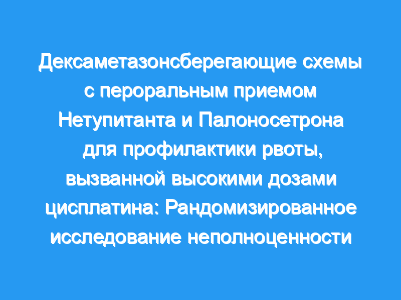 Упрощенный режим NEPA плюс однократная доза DEX обеспечивает сопоставимую профилактику тошноты и рвоты, вызванных химиотерапией, в течение 5 дней после химиотерапии с преимуществом избавления пациентов от дополнительных доз DEX в условиях высокого рвотного риска при химиотерапии на основе цисплатина. Последствия для практики: Дексаметазон (ДЕКС) традиционно играет важную роль в лечении рвоты, вызванной химиотерапией. Хотя в целом считается безопасным, даже кратковременное применение DEX связано с различными побочными эффектами, и некоторые данные свидетельствуют о том, что одновременное применение стероидов может снизить эффективность иммунотерапии. Это исследование демонстрирует сопоставимый противорвотный контроль в течение 5 дней после химиотерапии с упрощенной схемой нетупитанта /палоносетрона плюс однократная доза ДЕКС по сравнению со стандартным 4-дневным контрольным лечением ДЕКС в высоких дозах цисплатина. Это представляет собой клинически значимое достижение, поскольку оно не только упрощает противорвотную профилактику, но и дает возможность надлежащим образом использовать у пациентов, которым рекомендуется соблюдать осторожность при применении кортикостероидов.