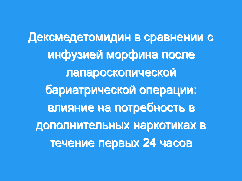 Внутривенная инфузия дексмедетомидина, начатая и продолжающаяся в течение 24 ч после лапароскопической бариатрической операции, может снизить общую потребность в морфине во время этот период. Это пилотное исследование продемонстрировало, что послеоперационное введение дексмедетомидина может быть щадящим для морфина после лапароскопической бариатрической операции.