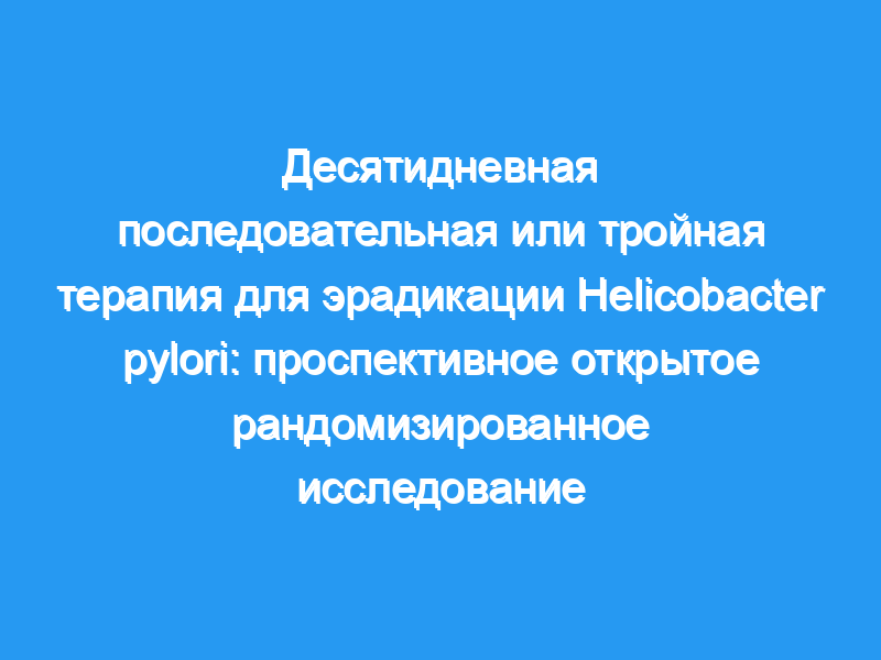 Предпосылки и цель: Повышенная устойчивость Helicobacter pylori к антибиотикам увеличила потребность в разработке новых методов лечения H. pylori первой линии. Мы проспективно оценили 10-дневную последовательную и традиционную тройную терапию у пациентов с язвенной болезнью.