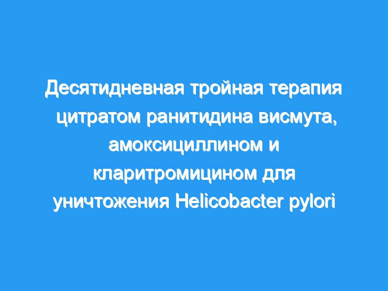 В испытаниях в США было показано, что четырнадцатидневная терапия ранитидина цитратом висмута, амоксициллином и кларитромицином приводит к высокой скорости эрадикации Helicobacter pylori (более 90%). Целью этого исследования было определить скорость эрадикации H. pylori при трехкратном режиме лечения на основе ранитидина висмута цитрата более короткой продолжительности (10 дней), который, как было показано, эффективен в Европе.