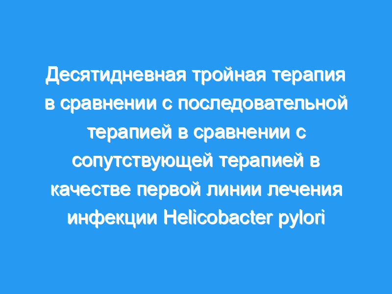 Рандомизированное исследование, проведенное в учебной больнице. Пациенты в возрасте 21 года и старше с впервые диагностированной инфекцией H. pylori были рандомизированы на 10-дневную TT, ST или CT. Результат лечения оценивали с помощью дыхательного теста с 13-углеродной мочевиной по крайней мере через 4 недели после терапии. Были проведены анализы показателей эрадикации с намерением лечить (ITT), модифицированной ITT (MITT) и согласно протоколу (PP).