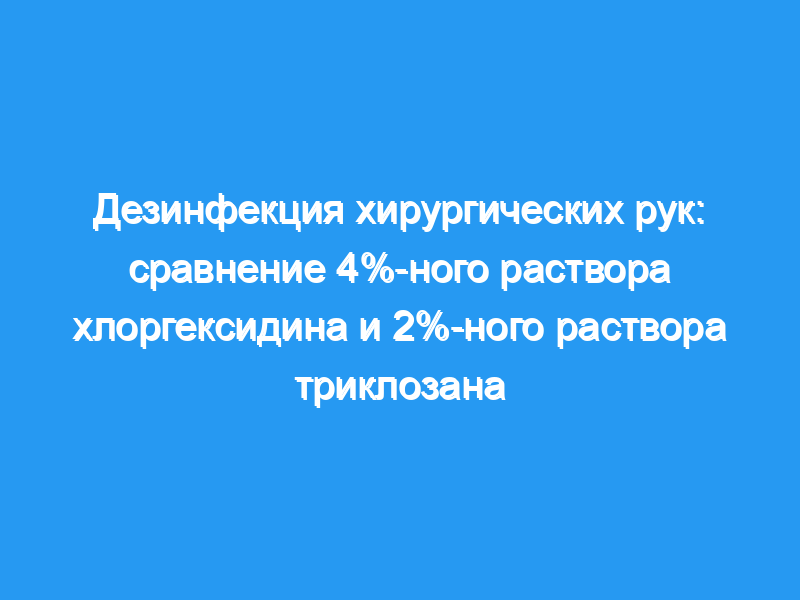 Влияние 4%-ного детергента с хлоргексидином и 2%-ного детергента с триклозаном на местную флору рук сравнивали на 20 здоровых добровольцах.