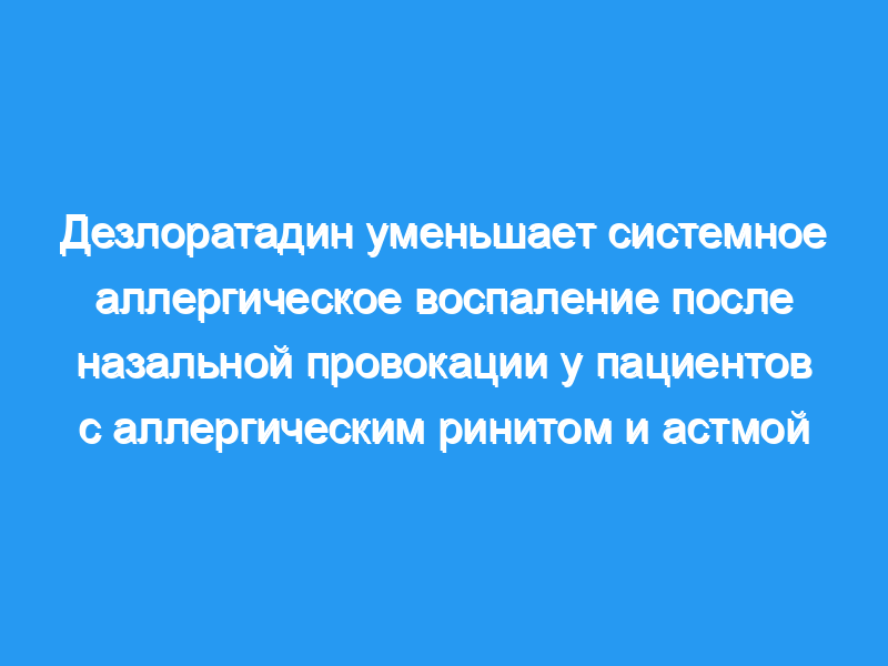 Доклинические исследования показали, что некоторые антигистаминные препараты второго поколения обладают противовоспалительным действием. Неизвестно, проявляются ли эти эффекты также in vivo. В этом исследовании мы исследовали влияние лечения дезлоратадином (DL) на системное воспаление и на воспаление слизистой оболочки носа и бронхов после назальной аллергенной провокации (NP) у пациентов с аллергическим ринитом и астмой, вызванными пыльцой травы.