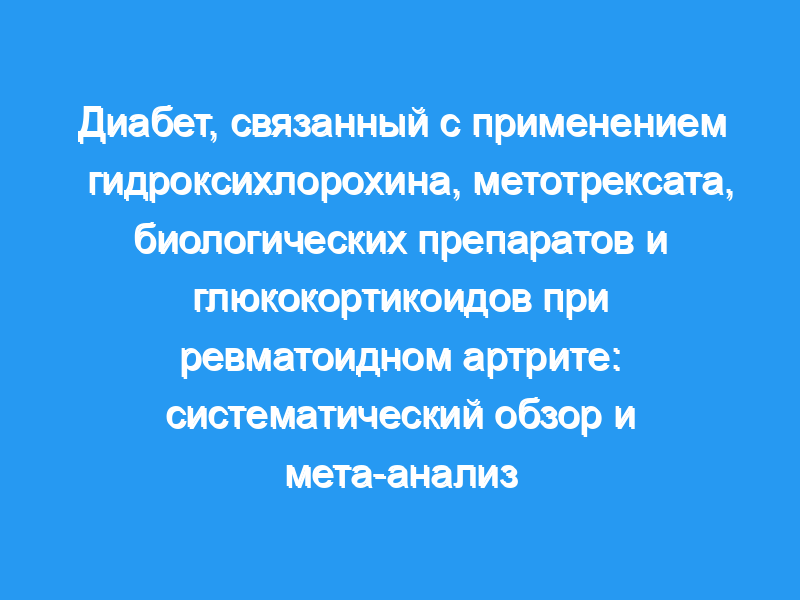 В общей сложности 15 исследований с участием 552 019 пациентов с РА (11 для гидроксихлорохина, 7 для метотрексата, 6 для ингибиторов фактора некроза опухоли [TNFi] и 8 для глюкокортикоидов) были включены. В объединенном анализе сообщалось о снижении риска диабета при применении гидроксихлорохина (мета-ОР 0,61, 95% ДИ 0,56-0,66), метотрексата (мета-ОР 0,81, 95% ДИ 0,75-0,87), TNFi (мета-ОР 0,63, 95% ДИ 0,55-0,71), в то время как глюкокортикоиды были ассоциируется с повышенным риском развития диабета дозозависимым образом (любая доза: мета-ЧСС 1,46, 95% ДИ 1,39-1,53, <,10 мг/сут преднизолона или эквивалент: мета-ЧСС 1,30, 95% ДИ 1,13-1,51, ≥10 мг/сут преднизолона или эквивалент: мета-ОР 2,25, 95% ДИ 1,88-2,70).