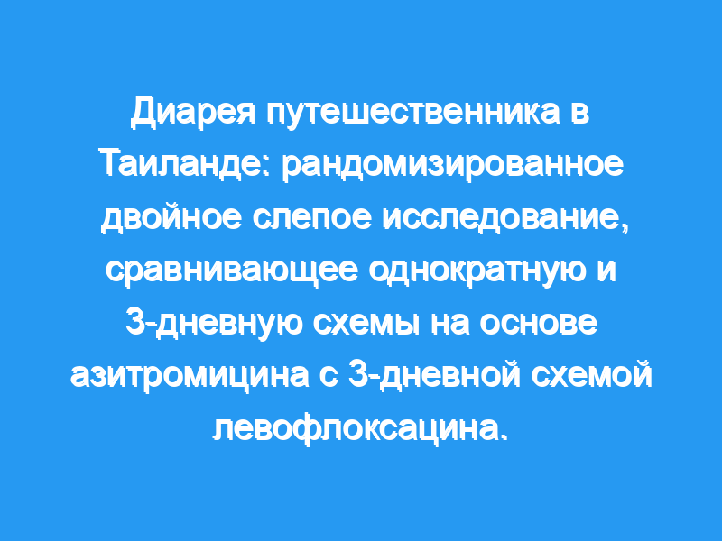 Диарея путешественников в Таиланде часто вызывается Campylobacter jejuni. Показатели резистентности к фторхинолонам (FQ) у организмов Campylobacter в последние годы превысили 85%, и наблюдалось снижение эффективности фторхинолонов. Схемы приема азитромицина оценивались в рандомизированном двойном слепом исследовании азитромицина, вводимого в виде однократной дозы 1 г или 3-дневного режима (500 мг в день), по сравнению с 3-дневным режимом приема левофлоксацина (500 мг в день) в военно-полевых клиниках в Таиланд. Исходы включали клинические конечные точки (время до последнего неоформленного стула и показатели излечения) и микробиологические конечные точки (эрадикация патогена).