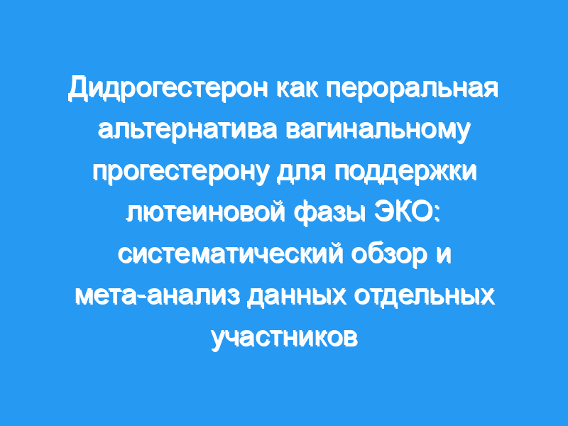 Целью этого систематического обзора и мета-анализа было провести всестороннюю оценку фактических данных об эффективности и безопасности перорального дидрогестерона по сравнению с микронизированным вагинальным прогестероном (MVP) для поддержки лютеиновой фазы.