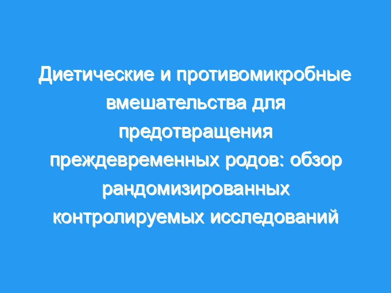 Систематические обзоры диетических и противомикробных вмешательств во время беременности, в которых сообщается о частоте преждевременных родов (роды до 37 недель) и «недоношенности» (включая низкий вес при рождении) в качестве первичных или вторичных исходов были включены.