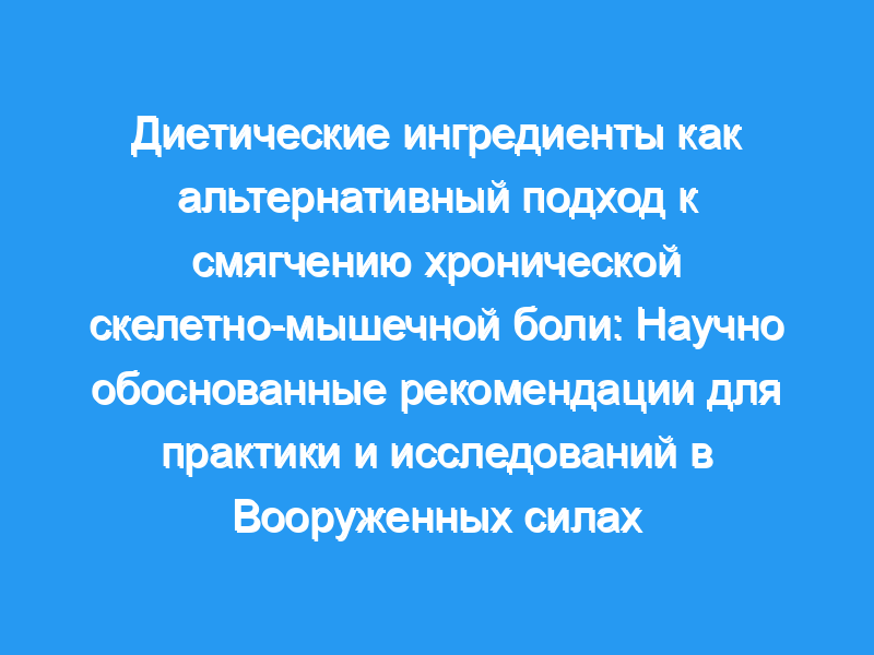 Примерно 55-76% военнослужащих используют пищевые добавки по различным причинам, включая боль и связанные с ней последствия. В этой работе оценивается текущее исследование пищевых ингредиентов для лечения хронических скелетно-мышечных болей, чтобы обосновать решения для практики и самообслуживания, особенно для персонала Сил специальных операций.