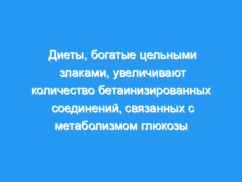 Нашей целью было исследовать новые триметилированные (бетаинизированные) соединения, полученные от мышей и людей, и их связь с диетами, богатыми цельнозерновыми продуктами, с резистентностью к инсулину и секрецией инсулина. Дизайн: Образцы плазмы натощак были получены в ходе исследования кормления мыши (самца C57BL/6J) и контролируемого диетического вмешательства. Испытание на мышах включало кормление мышей кормом, обогащенным ржаными и пшеничными отрубями, который сравнивали с диетой с высоким содержанием жиров. В исследовании на людях участники, набранные из Куопио, Финляндия (n = 69) и Неаполя, Италия (n = 54) с признаками метаболического синдрома, были случайным образом распределены либо на диету, обогащенную цельнозерновыми продуктами, либо на контрольную диету в течение 12 недель. Концентрации бетаинизированных соединений в плазме крови анализировали с использованием жидкостной хроматографии-тандемной масс-спектрометрии. Резистентность к инсулину и секрецию инсулина оценивали в пероральном тесте на толерантность к глюкозе и тесте на толерантность к глюкозе во время еды.