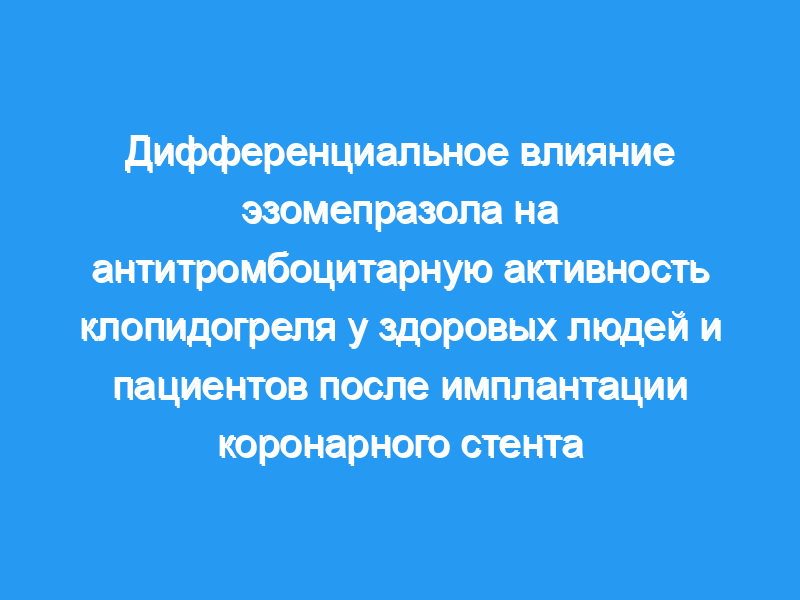 Эти различия в влиянии эзомепразола на антитромбоцитарную активность клопидогреля у здоровых людей и пациентов после имплантации коронарного стента заслуживают дальнейшего изучения.