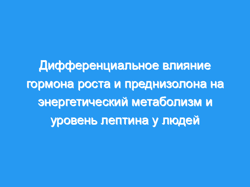 Также неизвестно, влияют ли глюкокортикоиды на калоригенный эффект GH, которые, как известно, противодействуют анаболическому действию GH. Для достижения этой цели восемь нормальных субъектов мужского пола (в возрасте от 22 до 28 лет, индекс массы тела от 21,6 до 26,3 кг/м2) были рандомизированы в течение четырех 4-дневных периодов лечения с (1) ежедневными подкожными (SC) инъекциями плацебо и таблетками плацебо, (2) ежедневными инъекциями SC GH (0,1 МЕ/кг х сут) и таблетки плацебо, (3) ежедневное введение преднизолона (25 мг утром и вечером) плюс инъекции плацебо и (4) ежедневные инъекции гормона роста плюс введение преднизолона.