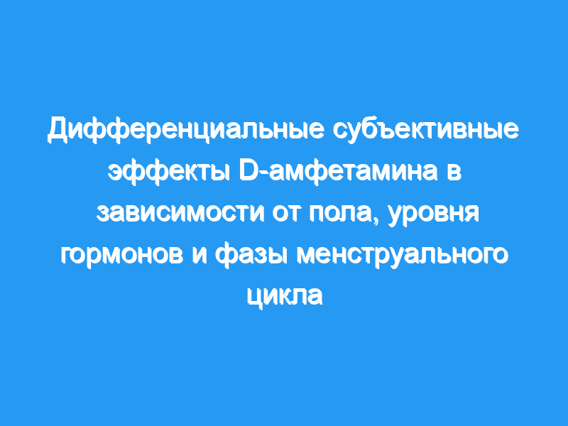 В настоящем исследовании оценивались субъективные и физиологические эффекты однократной дозы D-амфетамина (AMPH, 15 мг перорально) у здоровых, нормально тренирующихся женщин (n=13), которые получали амфетамин и плацебо (PL) как в фолликулярную, так и в лютеиновую фазы одного менструального цикла, и у здоровых мужчин (n=7). Женщины сообщали о большей субъективной стимуляции, вызванной амфетамином [Инвентаризация Центра исследований зависимости (ARCI)-A, ARCI-MBG, Опросник эффектов наркотиков (DEQ) «Чувствую наркотик, кайфую, хочу большего»] во время фолликулярной фазы, чем в лютеиновую фазу.
