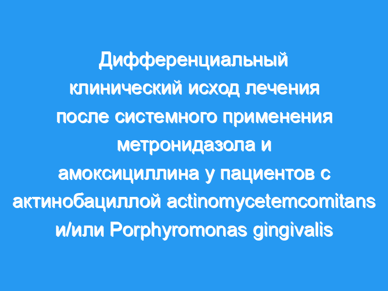 48 взрослых пациентов с нелеченным пародонтитом, у которых были обнаружены поддесневые бактерии Actinobacillus actinomycetemcomitans и/или Porphyromonas gingivalis, оцененные методом ПЦР, были рандомизированы для получения только скраб для всего рта (контроль) или скраб с системным метронидазолом плюс амоксициллин и наддесневое орошение хлоргексидина диглюконата (тест). У пациентов, получавших A. actinomycetemcomitans интраорально на исходном этапе, дополнительная антимикробная терапия приводила к значительно более высокой частоте увеличения уровня прикрепления зондирования (PAL) на 2 мм или более по сравнению с одним масштабированием в течение 12 месяцев (p<,0,05). Кроме того, подавление A. actinomycetemcomitans в поддесневой бляшке ниже обнаруживаемых уровней было связано с увеличением частоты развития PAL gai.