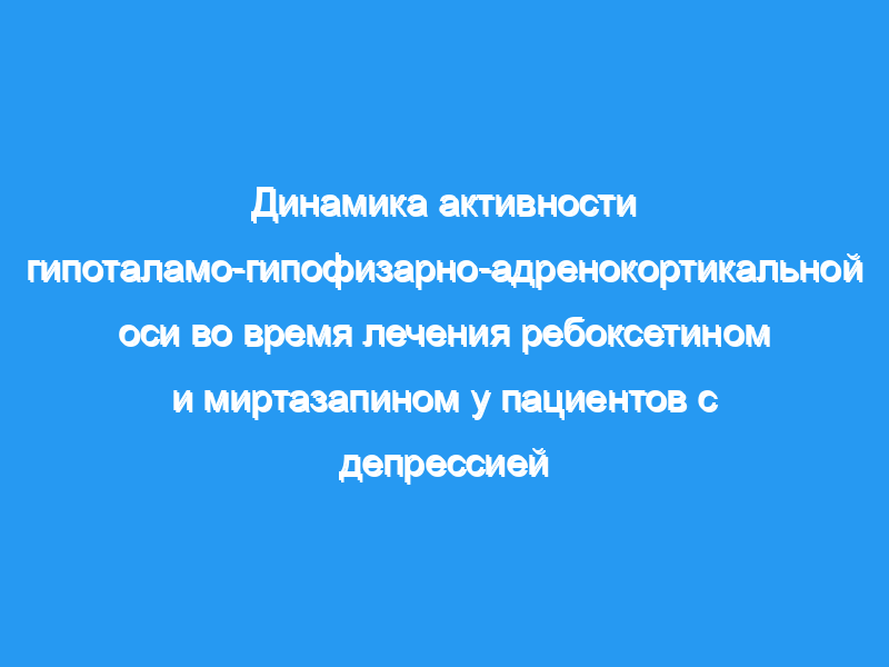 Сорок пациентов, не получавших лекарств, страдавших от тяжелого депрессивного эпизода (критерии Диагностического и статистического руководства по психическим расстройствам -IV), получали либо ребоксетин (8 мг/сут, n=20), либо миртазапин (45 мг/сут, n=20) в течение 5 недель. До, после 1 и 5 недель терапии был проведен тест DEX/CRH и измерены концентрации кортизола и АКТГ.