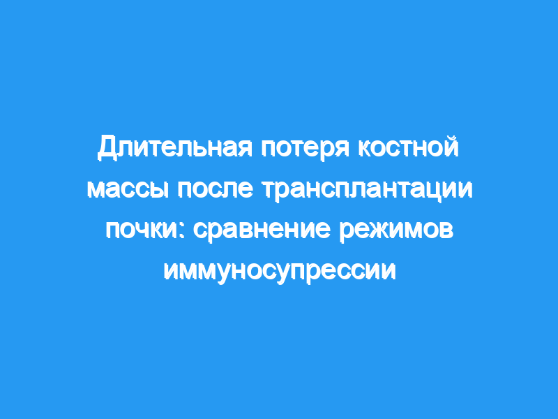 Серийные измерения маркеров костного метаболизма в сыворотке крови и моче и плотности костной ткани предплечья (МПКТ) методом двухфотонной абсорбциометрии были проведены у 22 пациентов, перенесших трансплантацию почки в 1986 году. Пациенты были рандомизированы для иммуносупрессии (1) только циклоспорином (группа CsA, n = 10), (2) циклоспорином в течение 3 месяцев с последующим азатиоприном-преднизоном (группа CsA/AzP, n = 3) или (3) длительным азатиоприном-преднизоном (группа LT AzP, n = 9). Поскольку в течение первых 6 месяцев не было отмечено снижения минеральной плотности костной ткани (МПКТ), группы 2 и 3 рассматривались вместе (группа AzP, n = 12). Среднее значение +/- SEM BMD снизилось на 19 +/- 2 % через 36 месяцев (n = 19, p <, 0,01), с аналогичным снижением, наблюдаемым в группе CsA и AzP.