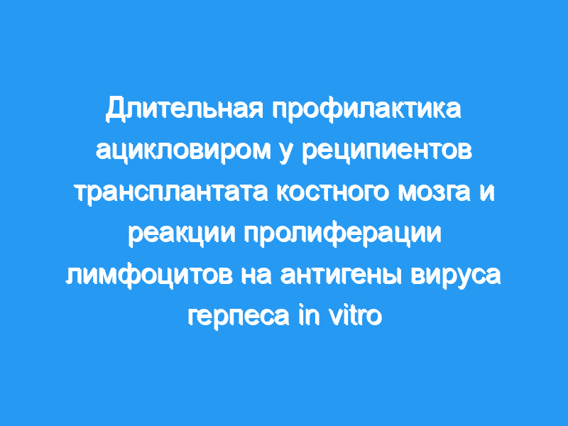 В целом у пациентов, получавших ACV, было значительно меньше реактиваций ВПГ в течение первого года после ТКМ. (Р менее 0,05). Реакция пролиферации лимфоцитов, специфичных для ВПГ, также была ниже в группе, получавшей ACV, через 3, 6 и 12 месяцев после ТКМ (Р менее 0,05). Однако инфекции VZV довольно часто повторялись после прекращения профилактики ACV.