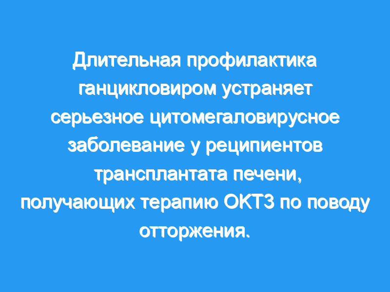 Эти результаты предполагают, что ЦМВ может быть устранен как значительный патоген у реципиентов трансплантата печени, получающих OKT3 для отторжения, путем длительного профилактического приема гнацикловира, который является безопасным.