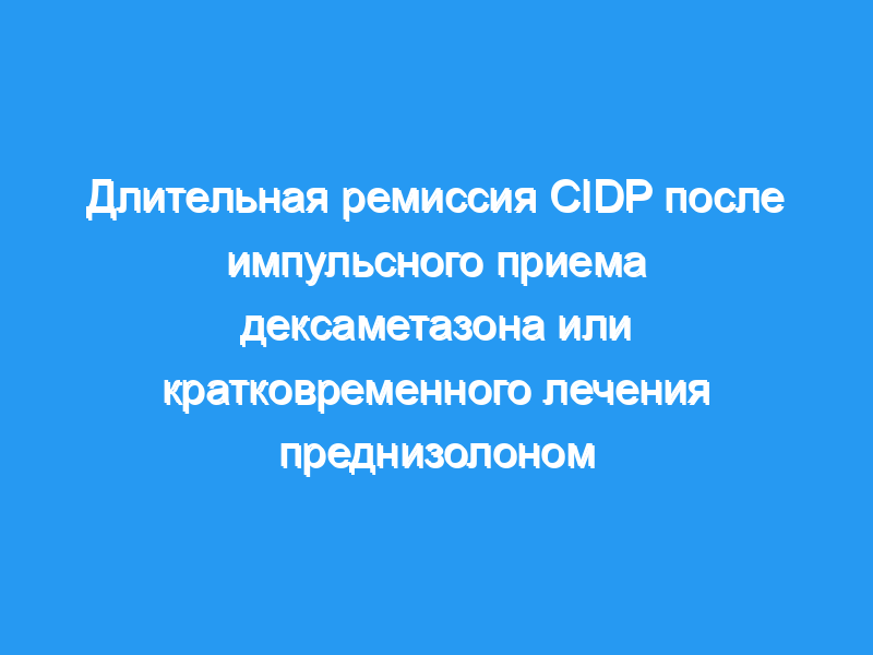 Излечение или длительная ремиссия могут быть достигнуты примерно у четверти пациентов с CIDP после 1 или 2 курсов импульсного дексаметазона или 8-месячного ежедневного приема преднизолона. У пациентов, не реагирующих на лечение, диагноз CIDP должен быть пересмотрен. Классификация доказательств: Это исследование предоставляет доказательства IV класса, что импульсный прием дексаметазона или 8-месячный ежедневный прием преднизолона могут привести к длительной ремиссии при CIDP.