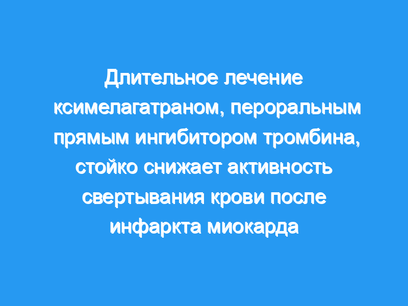 В исследовании ESTEEM пациенты с недавним инфарктом миокарда получали аспирин и были рандомизированы на одну из четырех доз (24-60 мг внутривенно) перорального прямого ингибитора тромбина ксимелагатрана или плацебо в течение 6 месяцев. Ксимелагатран и аспирин снижали риск повторных ишемических событий по сравнению с приемом только аспирина. В настоящем исследовании мы оценили влияние различных доз ксимелагатрана на фармакокинетику, измеренную концентрацией активного соединения мелагатрана в плазме крови и активированным частичным тромбопластиновым временем (АЧТВ), и фармакодинамику, связанную с маркерами активности свертывания, фрагментом протромбина 1 + 2 (F1 + 2) и D-димером. Методы и результаты: Образцы плазмы у 518 пациентов были собраны до, во время и после периода лечения. Наблюдалась линейная зависимость доза-концентрация на пике и минимуме, а также линейная зависимость между концентрацией и АЧТВ (P <, 0,001). F1 + 2 и D-димер были снижены на 25% и 52% через 1 неделю (P <, 0,001) в группах ксимелагатрана по сравнению с группой плацебо, и снижение сохранялось в течение 6 месяцев лечения. Не было обнаружено различий в уровнях F1 + 2 или D-димера между различными дозировками ксимелагатрана. Не было никакой корреляции между концентрацией мелагатрана и изменением уровней F1+2 и D-димера. После прекращения приема ксимелагатрана уровни F1+2 и D-димера вернулись к исходным уровням.