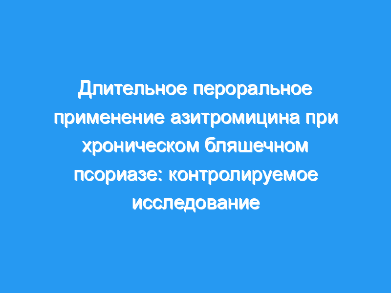 Учитывая благоприятный эффект бензатинпенициллина при хроническом бляшечном псориазе, но из-за риска чувствительности к пенициллину и болезненного парентерального способа введения, мы попробовали пероральный азитромицин в этом единственном случае. слепое рандомизированное исследование случай-контроль.