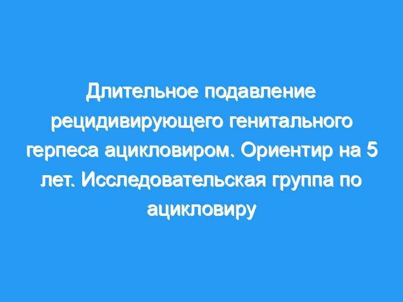Это исследование расширяет профиль безопасности и эффективности перорального ацикловира в подавлении генитального герпеса до 5 лет. У большинства пациентов во время супрессивной терапии ежегодно не было рецидивов. Терапия хорошо переносилась. Применение ацикловира не было связано с серьезными побочными эффектами или кумулятивной токсичностью.