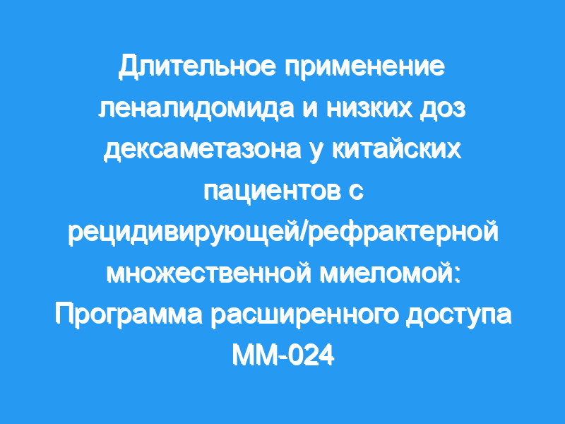 Эффективность и безопасность леналидомида в сочетании с низкими дозами дексаметазона (Rd) у китайских пациентов с рецидивирующей/рефрактерной множественной миеломой (RRMM) были продемонстрированы в многоцентровом исследовании фазы 2 (MM-021). MM-024 была Программой расширенного доступа (EAP), которая позволила отвечающим пациентам в исследовании MM-021 продолжать получать Rd и предоставлять дополнительные данные о безопасности и эффективности при более длительном наблюдении.