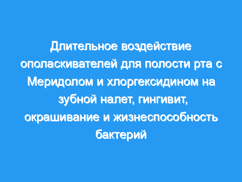 Это исследование показало, что Меридол уменьшает накопление зубного налета, замедляет развитие гингивита, обладает определенным бактерицидным действием и вызывает лишь незначительное окрашивание зубов.