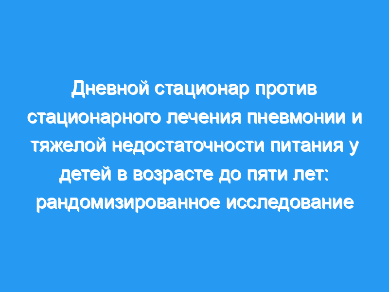 Рандомизированное клиническое исследование, в котором дети в возрасте от 2 месяцев до 5 лет с пневмонией и тяжелой недостаточностью питания были случайным образом распределены на лечение в DC или стационарное стационарное лечение. Мы использовали блочную рандомизацию переменной длины от 8 до 20 и произвели сгенерированные компьютером случайные числа, которые были назначены одному из двух вмешательств. Успешное лечение определялось как устранение клинических признаков пневмонии и выписка из модели оказания медицинской помощи (DC или больницы) без необходимости направления в больницу (DC) или направления в другую больницу. Все дети как в ДК, так и в больнице получали цефтриаксон внутримышечно, ежедневную пищевую поддержку и микроэлементы.
