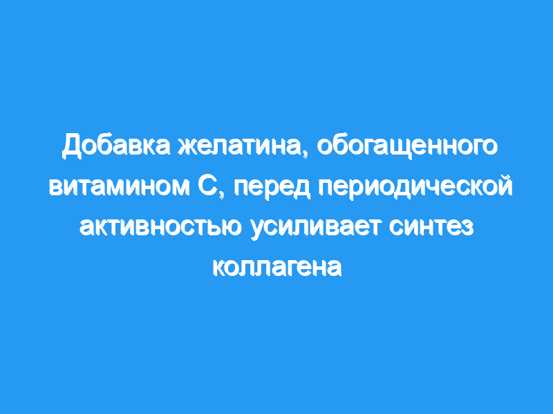 Это исследование было разработано, чтобы определить, может ли добавка желатина увеличить синтез коллагена. Дизайн: Восемь здоровых испытуемых мужского пола завершили рандомизированное двойное слепое перекрестное исследование, в котором они потребляли либо 5, либо 15 г желатина, обогащенного витамином С, либо контрольную группу плацебо. После первоначального питья каждые 30 мин брали кровь для определения содержания аминокислот в крови. Больший образец крови был взят до и через 1 ч после употребления желатина для лечения искусственных связок. Через час после первоначального приема добавки испытуемые выполнили 6 минут прыжков со скакалкой, чтобы стимулировать синтез коллагена. Эту схему приема добавок повторяли 3 раза в день с промежутками между тренировками ≥6 ч в течение 3 дней. Кровь брали до и через 4, 24, 48 и 72 ч после первой тренировки для определения содержания аминоконцевого пропептида коллагена I.