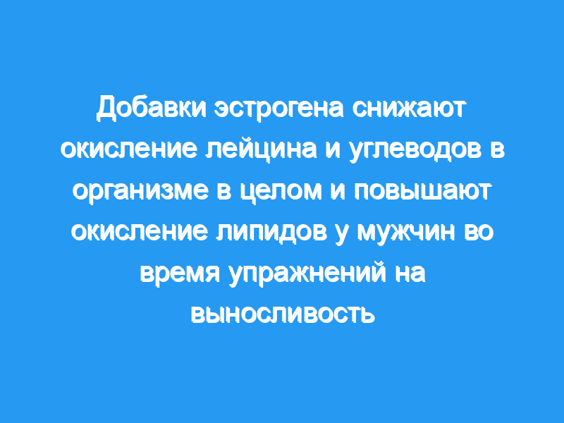 В рандомизированном двойном слепом плацебо-контролируемом перекрестном исследовании мы исследовали влияние приема эстрогена 12 мужчинами, активно занимающимися спортом, на окисление субстратов в организме и кинетику лейцина в покое и во время упражнений на выносливость средней интенсивности.