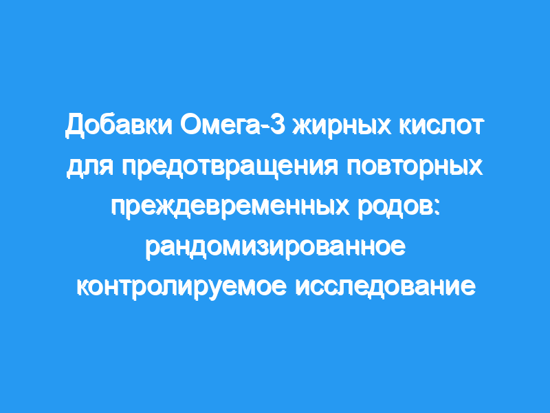 Омега-3 длинноцепочечные полиненасыщенные жирные кислоты прием кислотных добавок не принес пользы в снижении преждевременных родов у женщин, получавших 17альфа-гидроксипрогестерона капроат, у которых в анамнезе были преждевременные роды. Регистрация клинических испытаний: ClinicalTrials.gov , www.clinicaltrials.gov , NCT00135902. Уровень доказательности: I.