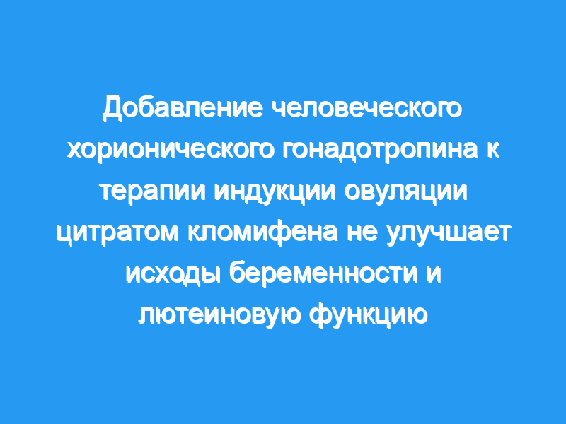 В рандомизированном проспективном исследовании 125 женщин с ановуляцией II класса Всемирной организации здравоохранения получали только 50 мг кломифенцитрата (группа A, n = 65) или 50 мг кломифенцитрата плюс ХГЧ (группа B, n = 60) в общей сложности 125 циклов во время естественного полового акта — рекомендовано цикла.