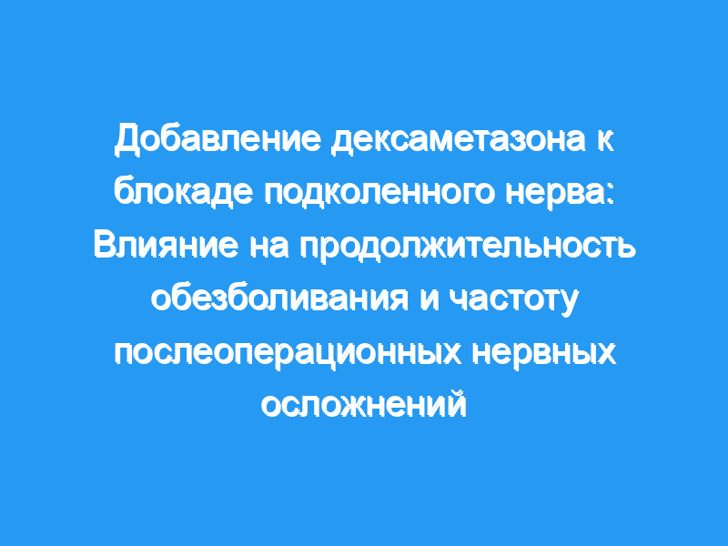 Заключение.Добавление дексаметазона к блокаде подколенного нерва, по-видимому, не влияет на продолжительность обезболивания или частоту послеоперационных невропатических осложнений.