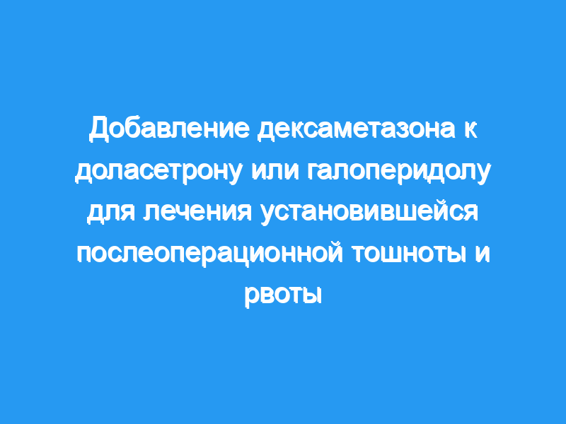 PONV рецидивировал значительно реже у пациентов, получавших дополнительный дексаметазон (33%), чем у пациентов, получавших дополнительный дексаметазон (51%). Комбинация дексаметазона с доласетроном или дексаметазона с галоперидолом превосходит только доласетрон или галоперидол для лечения PONV.