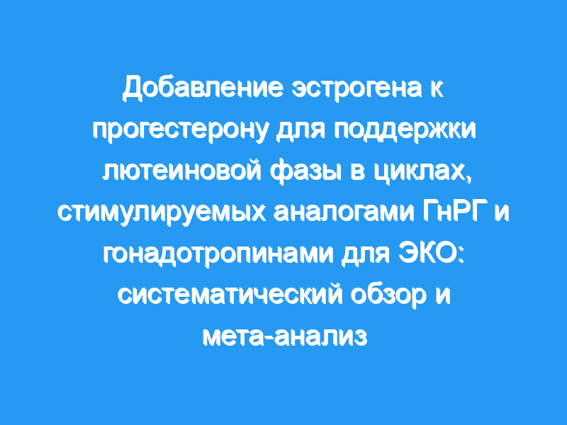 Целью настоящего систематического обзора и мета-анализа было изучение того, повышается ли вероятность беременности при добавлении эстрогена к прогестерону для поддержки лютеиновой фазы у пациенток, получавших лечение методом экстракорпорального оплодотворения (ЭКО).
