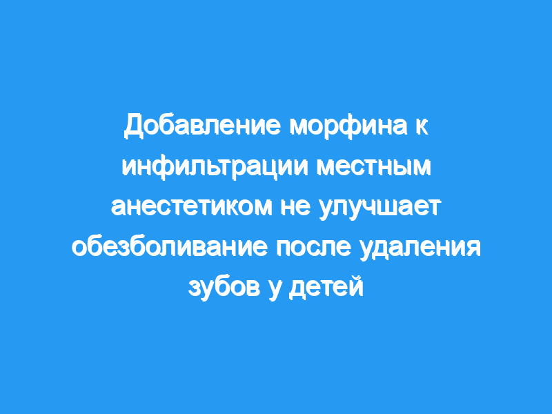 Мы пришли к выводу, что нет никакой пользы от добавления подсистемного обезболивающая доза морфина к местным анестетикам для обезболивания после удаления зубов у детей.