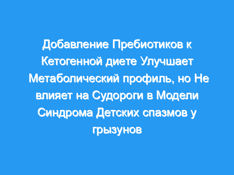 Было изучено влияние включения пребиотической клетчатки (ПРЕ, обогащенный олигофруктозой инулин, 0,8 г/дл) в диету KD на спазмы, этапы развития, микробиоту кишечника, метаболиты и метаболизм митохондрий гиппокампа.