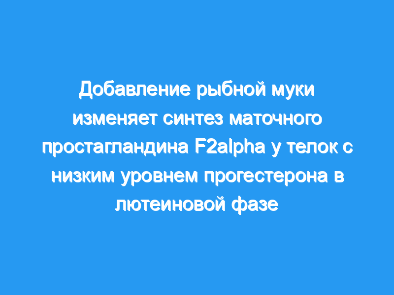 Целью настоящего исследования была оценка влияния омега-3 жирных кислот в рыбной муке на снижение синтеза PGF2alpha в матке у телок с низкой концентрацией прогестерона в лютеиновой фазе.