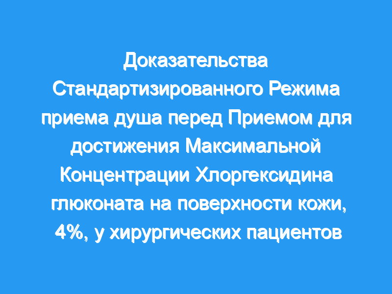 Средние (SD) концентрации комбинированного хлоргексидина глюконата были значительно выше (P <, 0,001) в группах с 1- и 2-минутной паузой по сравнению с группой без паузы у участников, принимавших 2 (978.8 [234.6], 1042.2 [219.9], и 265,6 [113,3] мкг/мл соответственно) или 3 (1067.2 [205.6], 1017.9 [227.8], и 387,1 [217,5] мкг/мл соответственно) душ. Не было никакой существенной разницы в концентрациях между 2 и 3 ливнями или между 1- и 2-минутными паузами. Выводы и актуальность: Стандартизированный режим приема душа перед приемом, включающий 118 мл 4%-ного водного раствора хлоргексидина глюконата на душ, минимум 2 последовательных душа и 1-минутную паузу перед ополаскиванием, приводит к максимальной концентрации хлоргексидина глюконата на поверхности кожи (16,5 мкг/см2), достаточной для ингибирования или убивает грамположительные или грамотрицательные патогены хирургических ран. Этот режим принятия душа устраняет недостатки, присутствующие в современных нестандартных протоколах приема душа перед приемом для пациентов, перенесших плановую операцию.