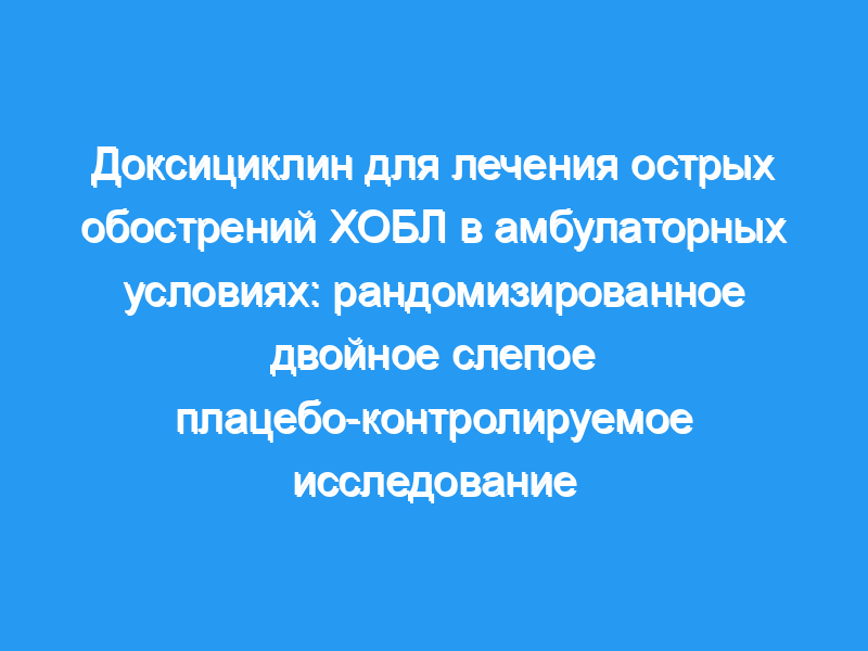 Антибиотики не снижают смертность или кратковременное отсутствие ответа на лечение у пациентов, получающих лечение по поводу острых обострений ХОБЛ в амбулаторных условиях. Однако долгосрочные эффекты антибиотиков неизвестны. Целью этого исследования было выяснить, продлевает ли антибиотик доксициклин, добавленный к пероральному кортикостероиду преднизолону, время до следующего обострения у пациентов с ХОБЛ, получающих лечение от обострения в амбулаторных условиях.
