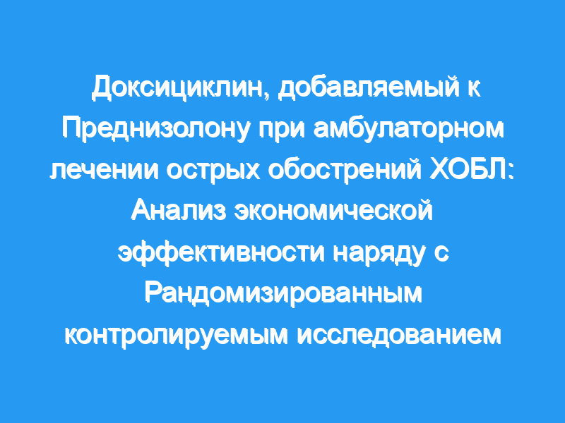 У большинства пациентов с хронической обструктивной болезнью легких (ХОБЛ) легкой и тяжелой степени наблюдаются обострения, которые также связаны с увеличением расходов на здравоохранение. Несмотря на ограниченные доказательства пользы антибиотиков при обострениях у амбулаторных пациентов, антибиотики часто назначаются. Целью этого исследования было выяснить, является ли доксициклин, добавляемый к преднизолону, экономически эффективным по сравнению с плацебо плюс преднизолон для лечения острых обострений ХОБЛ.