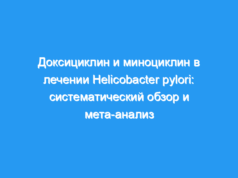 Предпосылки и цели: Снижение темпов эрадикации Helicobacter pylori и тенденция к росту устойчивости к антибиотикам вызывают большую озабоченность. Поэтому необходимы новые и эффективные методы лечения инфекции H. pylori. Мы провели систематический обзор и мета-анализ для оценки эффективности и безопасности полусинтетических тетрациклиновых схем лечения H. pylori.