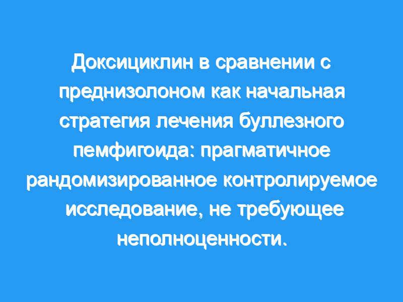 Буллезный пемфигоид — это кожное заболевание с волдырями, приводящее к повышенной смертности. Мы проверили, дает ли стратегия начала лечения доксициклином приемлемый краткосрочный контроль над волдырями, обеспечивая при этом долгосрочные преимущества в безопасности по сравнению с началом лечения пероральными кортикостероидами.