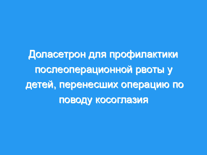 Дети, перенесшие операцию по удалению косоглазия, имеют высокую частоту послеоперационной рвоты (POV). Целью этого исследования была оценка эффективности и безопасности доласетрона для профилактики рвоты при сравнении однократной дозы 0,35 мг/кг-1 или 12,5 мг с плацебо.