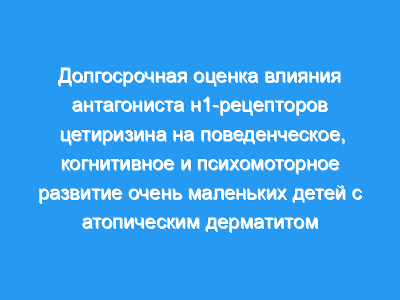 Эти результаты свидетельствуют о том, что нет никаких побочных эффектов на поведение или процессы обучения, связанные с длительное применение цетиризина у детей раннего возраста с атопическим дерматитом.