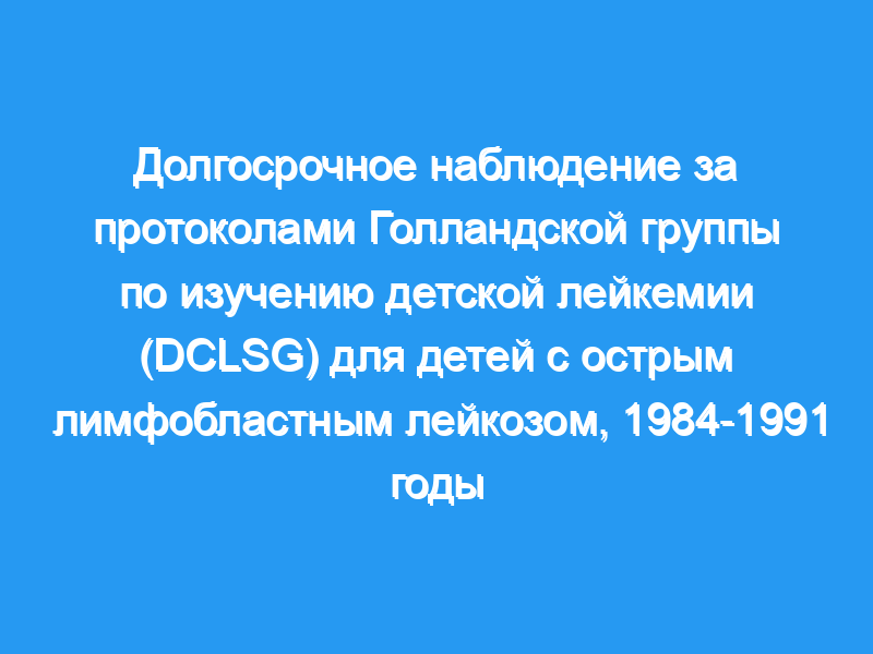 Здесь мы сообщаем о долгосрочных результатах протоколов DCLSG ALL-6 и -7 с особым акцентом на частоту рецидивов ЦНС после лечения без облучения черепа.